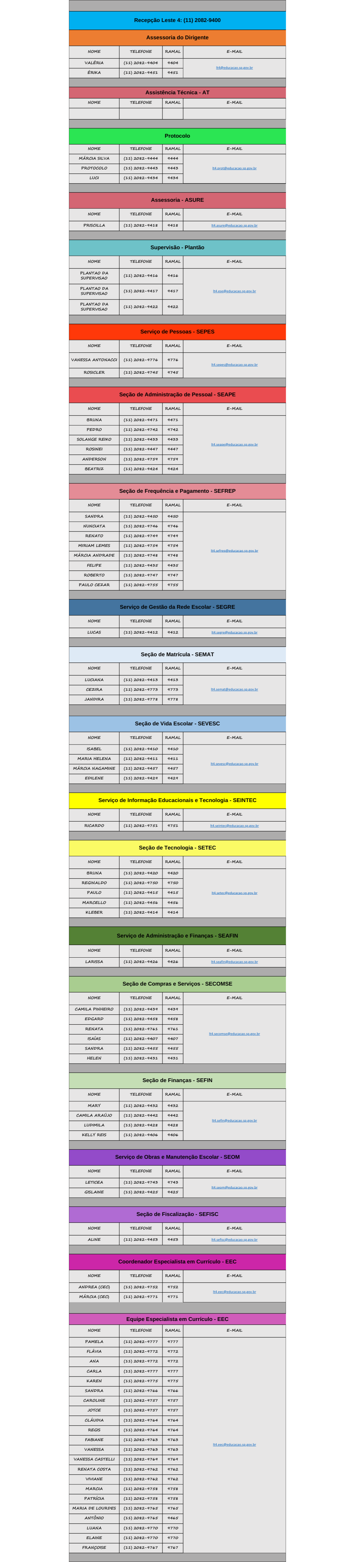 Contatos da Unidade Regional de Ensino Contatos URE Leste 4 para fazer o download da lista de ramais (CLIQUE AQUI) Ramais e-mails (Clique Aqui)